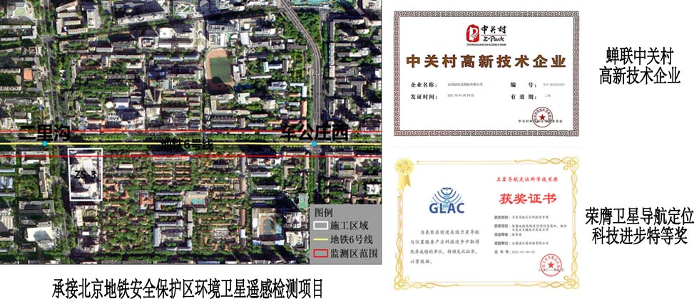 肩负国家使命,引领行业高度:蝉联中关村高新技术企业,荣膺卫星导航定位科技进步特等奖(行业最高奖),当选中国卫星导航定位协会副会长单位,行业领导地位确立,首次承接北京地铁安全保护区环境卫星遥感检测项目,技术应用开创新局。